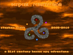 Serpent: Resurrection is a Hexen adventure designed to merge the speed and action of FPS'es with the progression and strategies of RPG's. It takes place in another world, some time after Shadowcaster ended. Most of the story will be explained in-game but in short, some crazy dark mage has resurrected the three Serpent Riders on the largest island o f a nearby archipalego and failed to control them. The adventurer from Shadowcaster was sent out to defeat them but nothing was heard for a while, so the player is sent out after him.